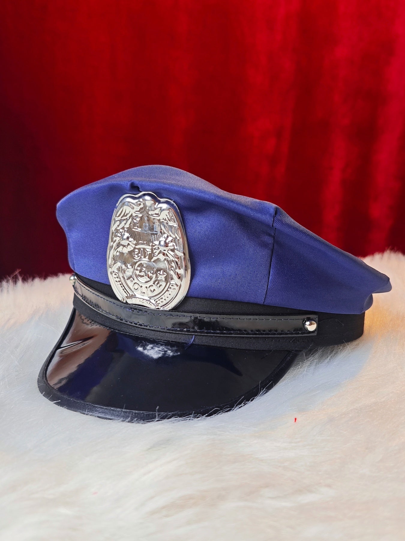Le chapeau de police complète l'ensemble en tant que point focal thématique saisissant, tandis que les bas résille classiques allongent visuellement les lignes verticales et parachèvent harmonieusement le look.