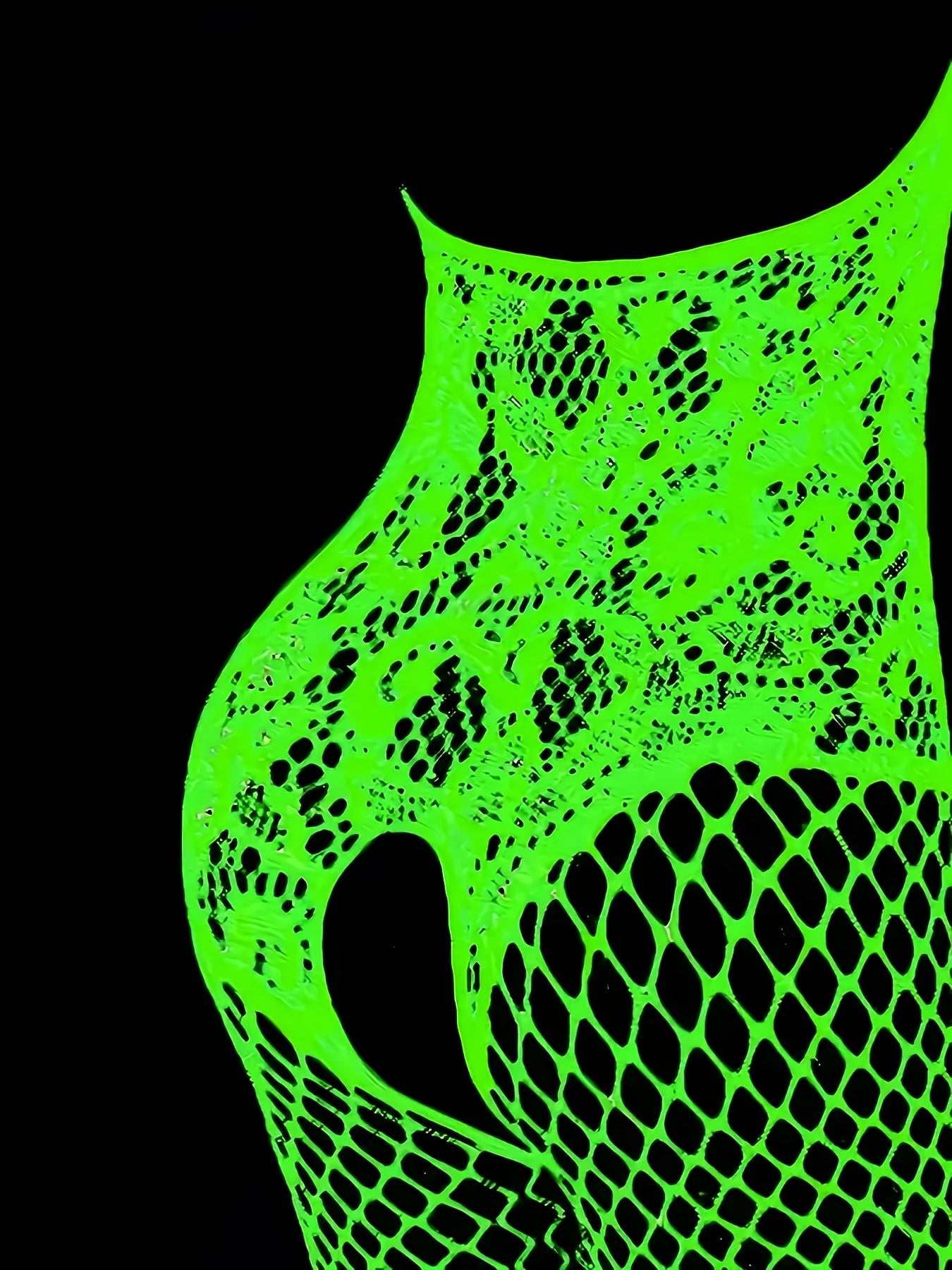 Neon Veil associe une coupe body élégante à un effet phosphorescent saisissant. Les éléments ajourés, subtilement et structurés, créent un design graphique moderne.