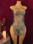 Grâce à son mélange élastique de nylon et d'élasthanne, la matière offre un confort optimal tout en assurant un maintien parfait. Silver Mirage est idéale pour les femmes en quête d'une tenue élégante et raffinée pour les soirées en boîte de nuit, les fêtes ou les occasions spéciales.